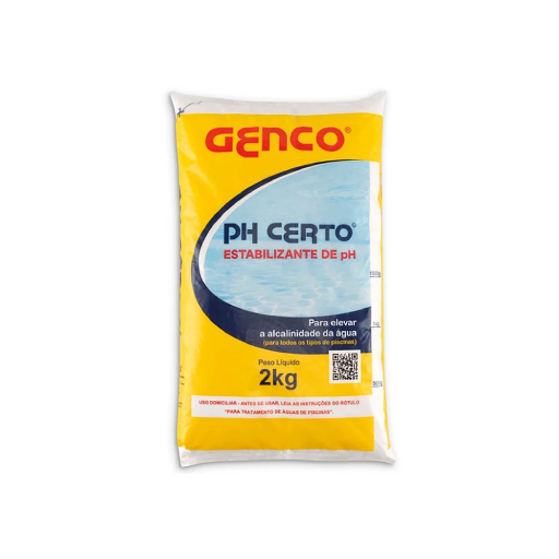 O pH Certo Genco é um produto em grânulos projetado para repor a alcalinidade total da água e, com isso, ajudar a estabilizar o pH, especialmente em piscinas que sofrem consumo de alcalinidade com uso de clorados estabilizados.