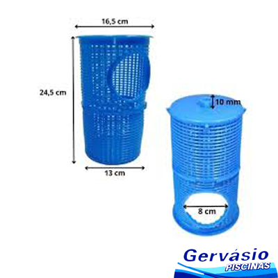 Cesto coletor grande para pré-filtro de motobombas Albacete, modelos APP 6 a APP 10. Fabricado em termoplástico resistente, tem a função de reter detritos sólidos antes da entrada da água na bomba, protegendo o rotor e aumentando a vida útil do equipamento. Ideal para aplicações com maior volume de água e sujeira.